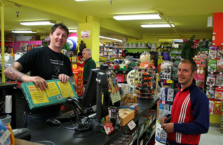 Today is the first day at their new location at 45th and Stone Way after just over ten years in Ballard. “You may remember we were on Stone Way in the ’80s and ’90s, so this completes the circle and brings us back to Stone Way in a new location,” explains McPhee’s website. Here’s a picture of Nate, from the McPhee photostream on Flickr, buying a string of chili pepper lights.